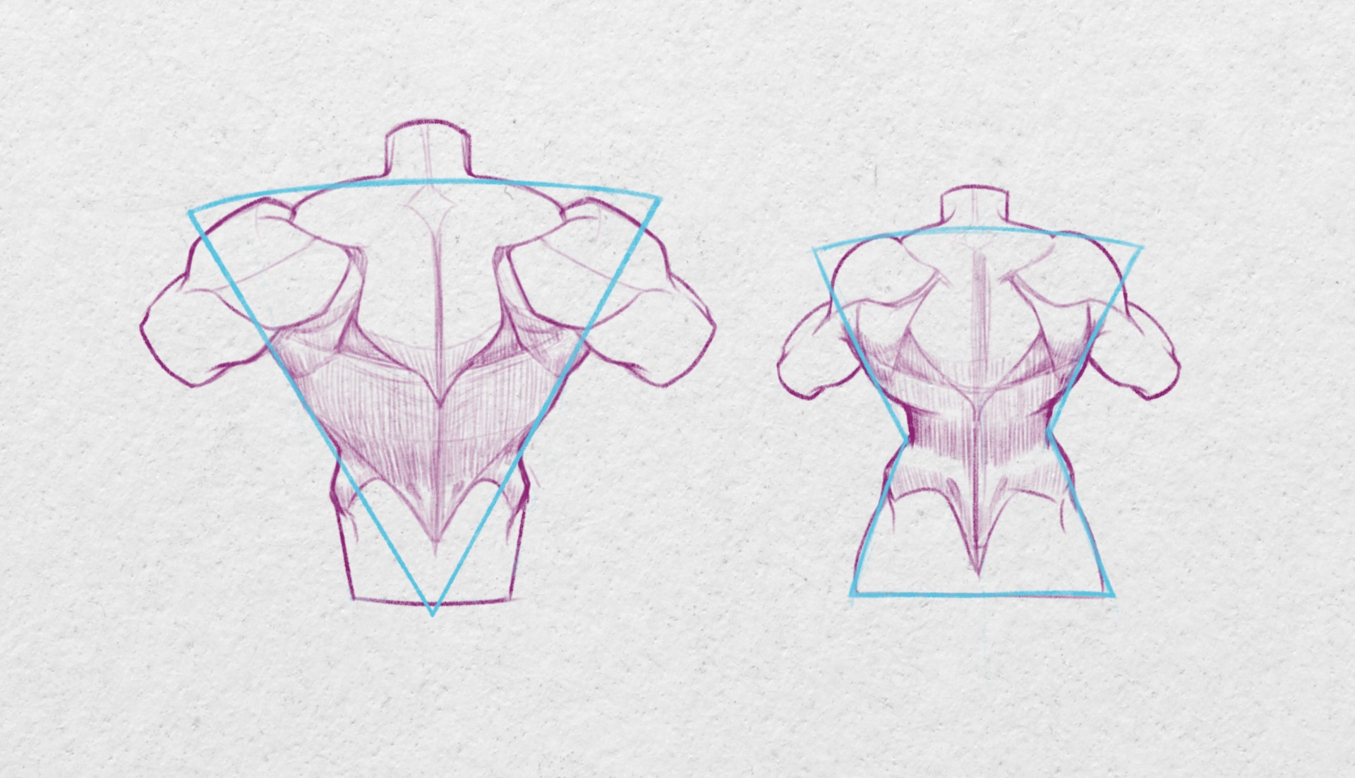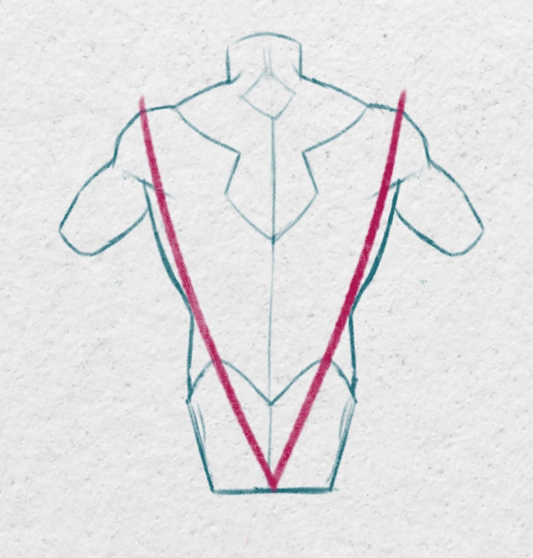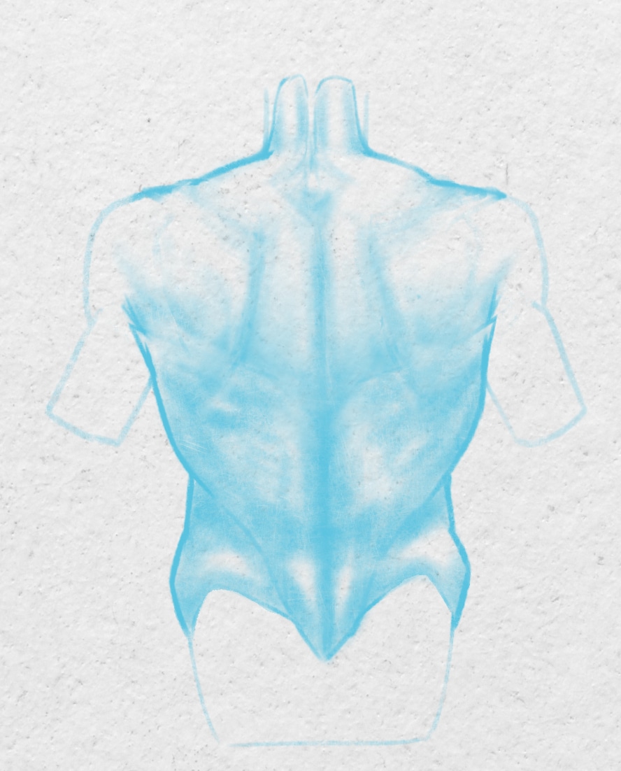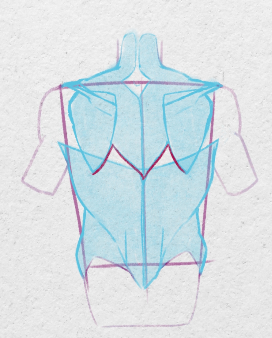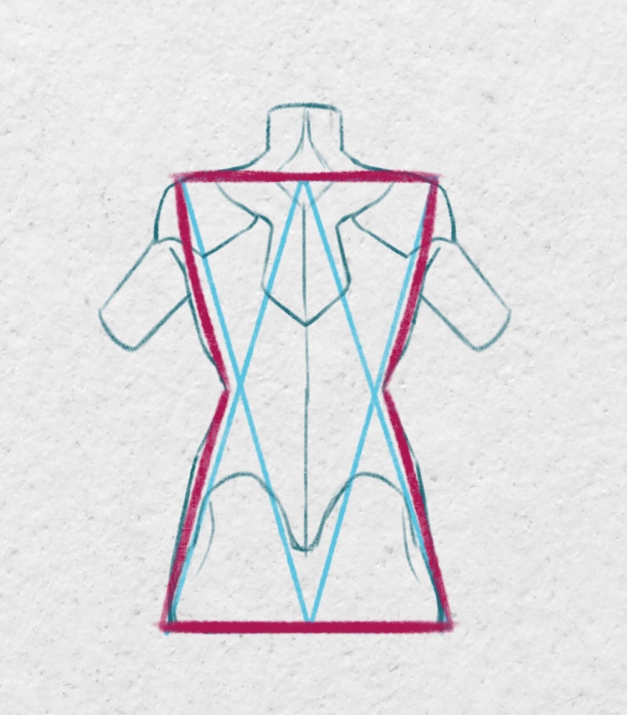 Dessinez la forme globale du dos en esquissant un trapèze inversé.