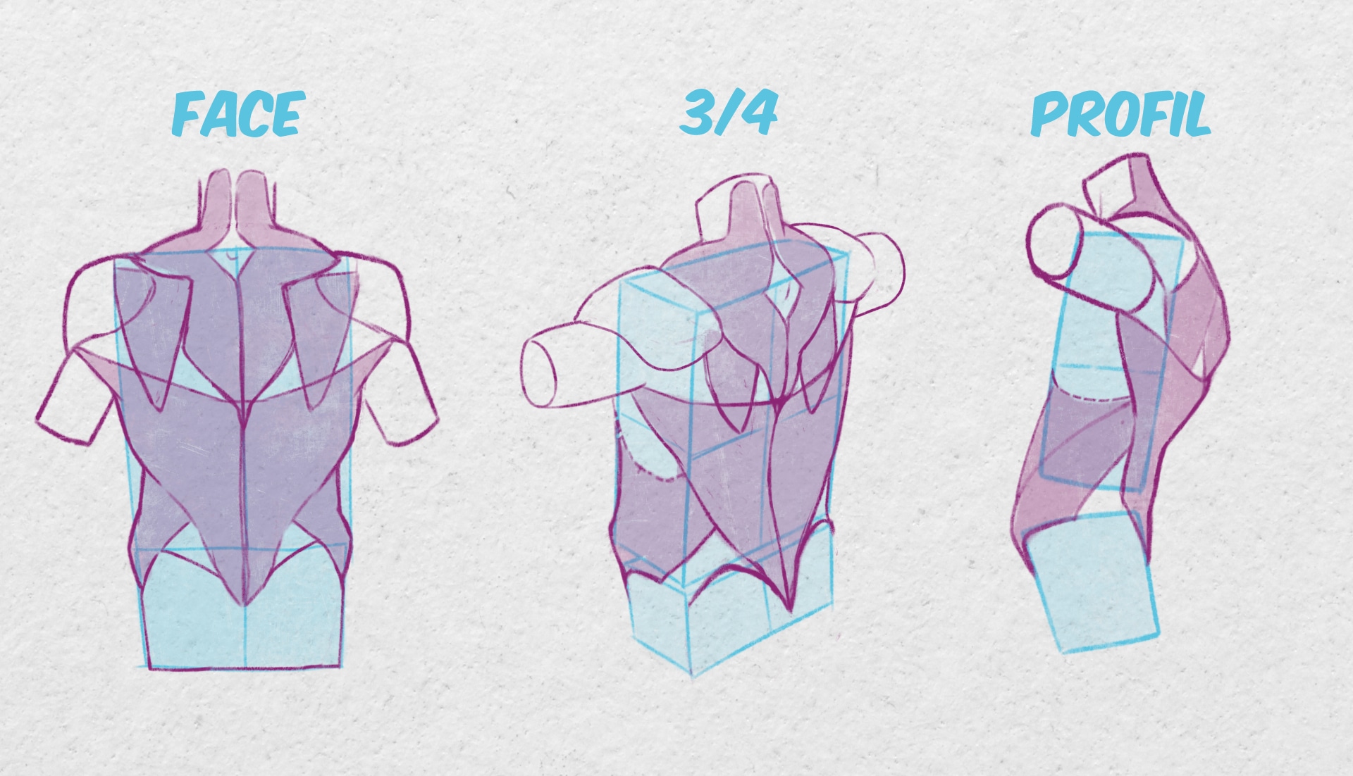 Pour assimiler le dessin du dos dans plusieurs angles de vue, il faut non seulement penser à sa structure globale mais également à la perspective et l’incidence de cette dernière.
