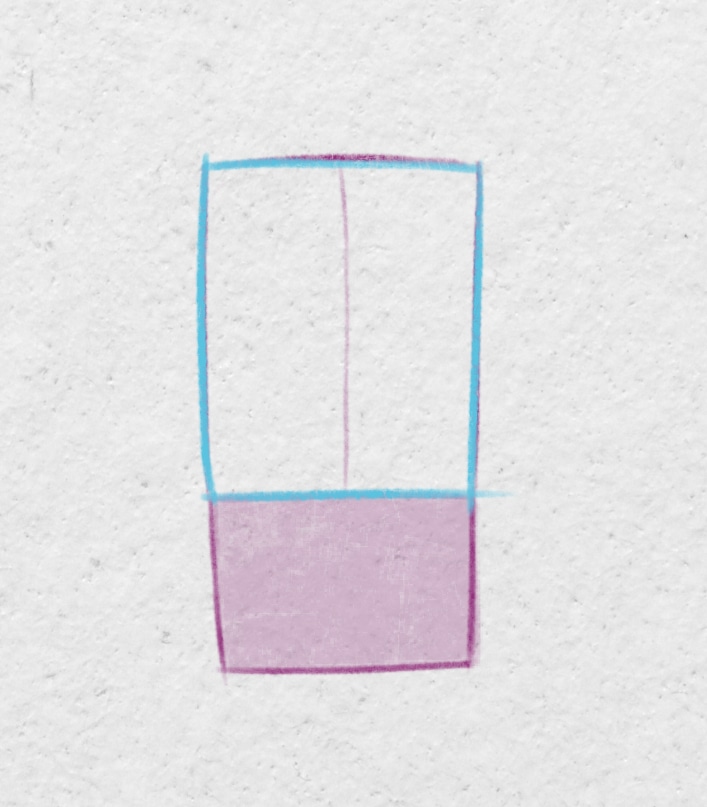 Le dos d’un enfant à un aspect uniforme qu’il est possible de simplifier par un rectangle. En dessin, il y aura peu de détail. Marquez uniquement les omoplates et la ligne de la colonne vertébrale.