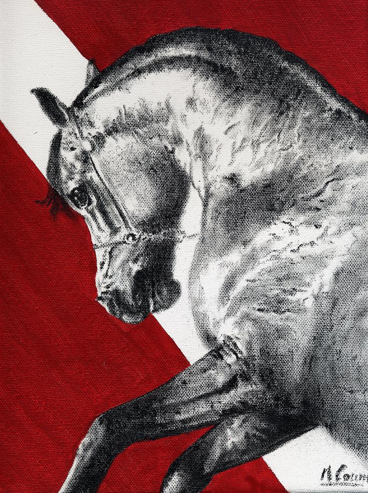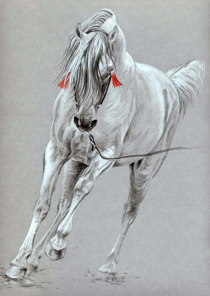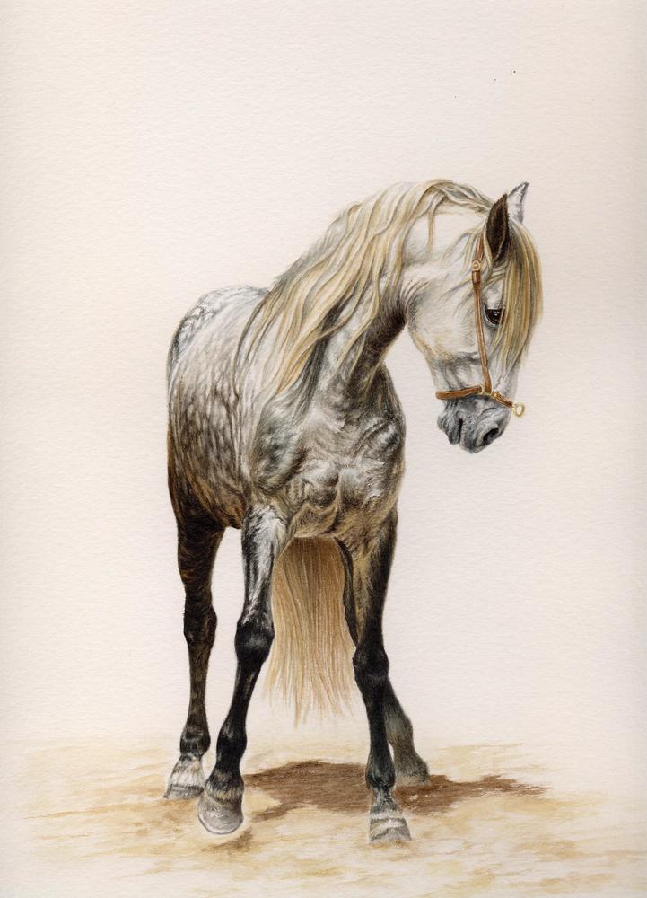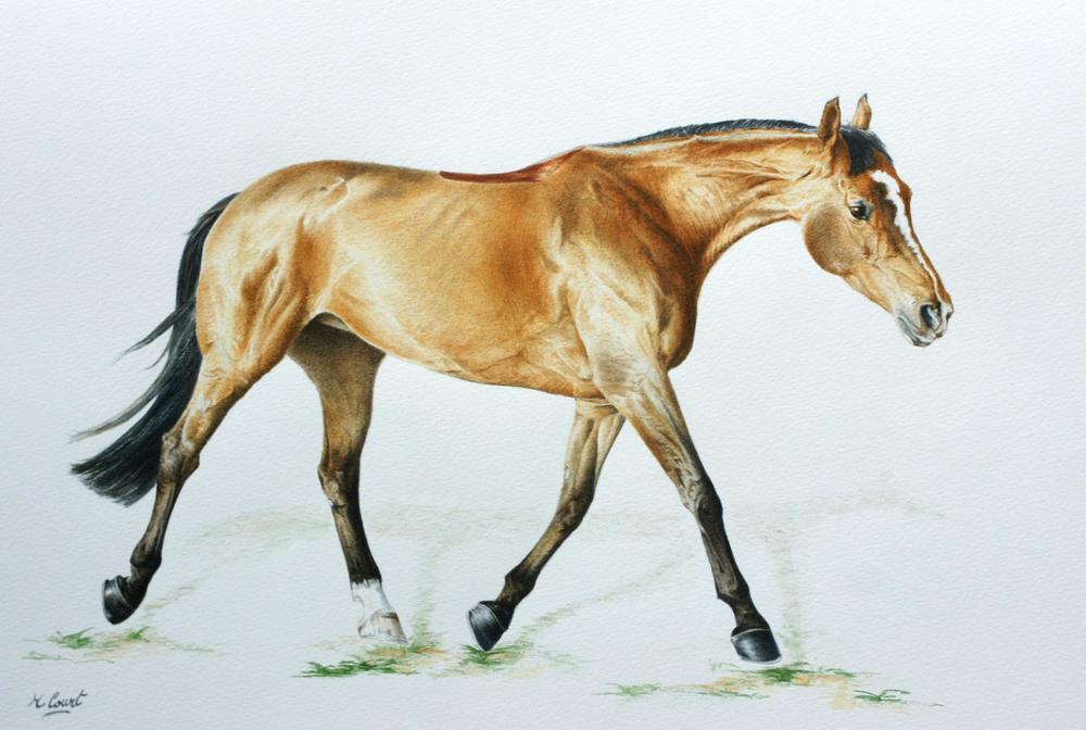 La passion des chevaux est une vieille « affaire » de famille. Mon grand-père les adorait et c’est lui qui m’en a parlé dès mon plus jeune âge. J’ai donc tout naturellement commencé par dessiner les chevaux puis les chiens et même les chats ensuite, car tous les animaux m’attirent.