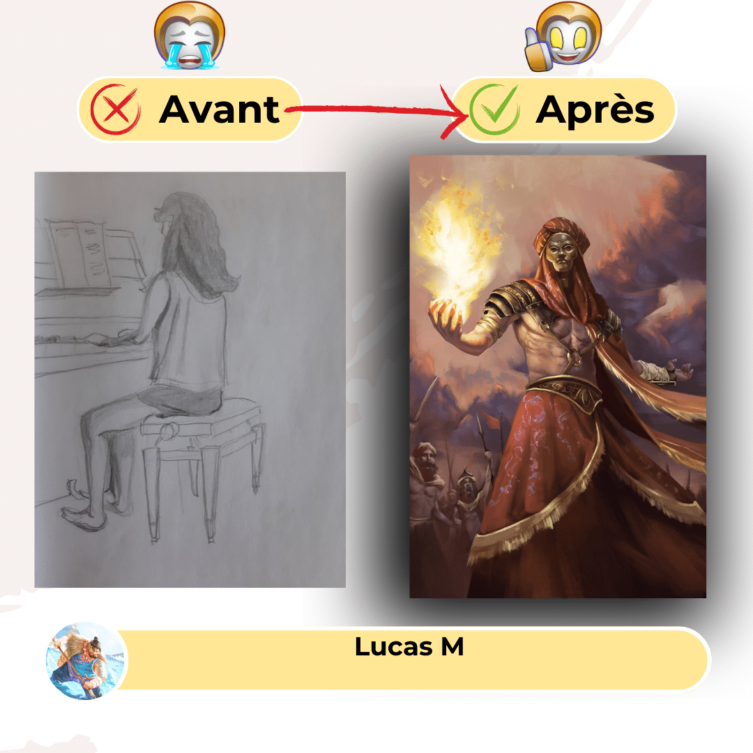 Sa recommandation est d’investir dans ta formation artistique avant même de penser à tes tarifs ou ton statut. Que ce soit via des cours en présentiels ou des formations structurées comme celles d’Apprendre à dessiner.