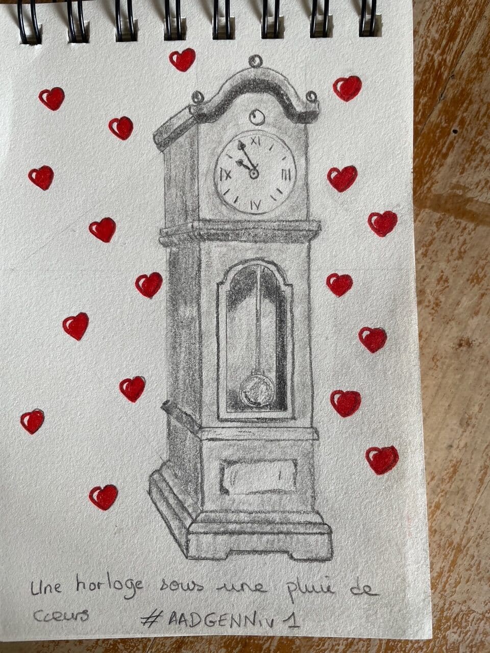 Il m’a donc sorti un sujet qui s’y prête! Une horloge sous une pluie de cœurs