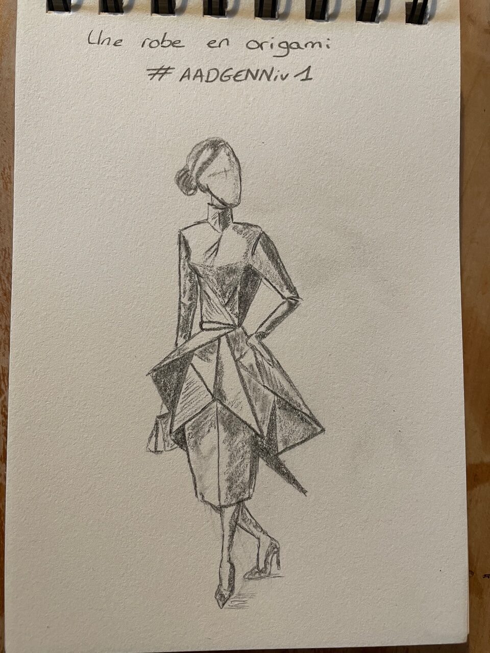 @CatgddmsAujourd’hui le GI m’a fait dessiner une robe en version origami. Je me suis bien amusée mais j’aurais du y passer plus de temps pour que les proportions soient respectées mais avec un Loulou sautillant de 4 ans qui crie « tu viens jouer maman tu viens jouer!!! » pas simple 🤣