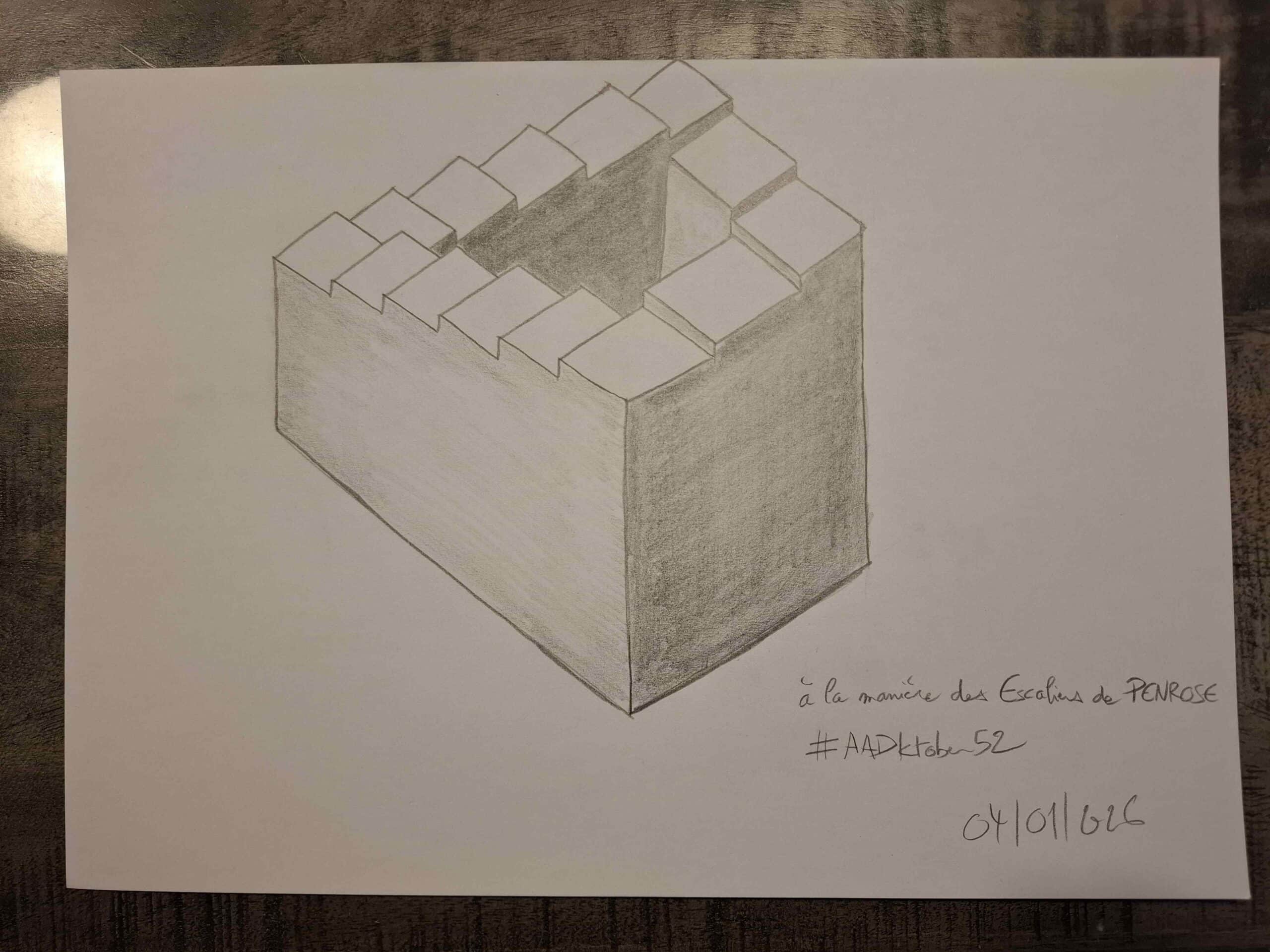 À mon tour d'entrer dans #AADKTOBER52 avec ma version à main levée des fameux Escaliers de Penrose😉