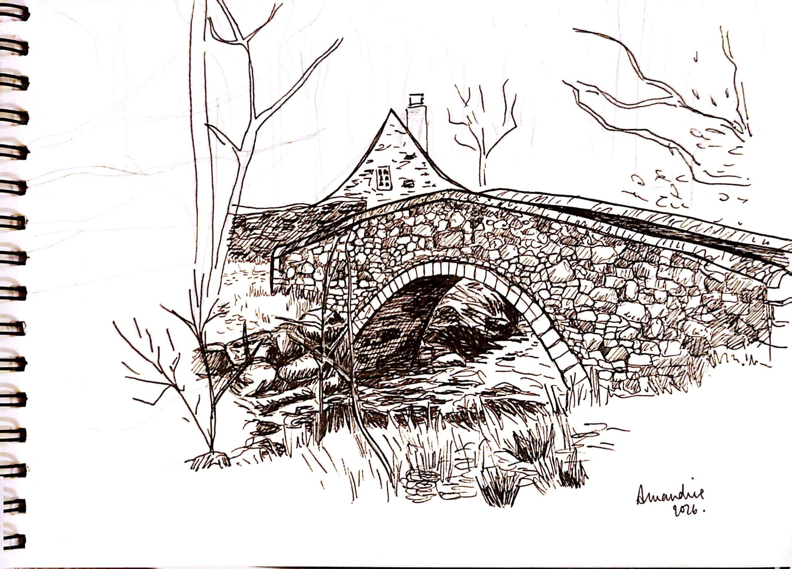 Voici mon pont ! (D'après un pont en Aveyron sur le ruisseau Le Lézert). J'avoue que j'ai perdu patience et j'ai arrêté de m'appliquer à un moment…