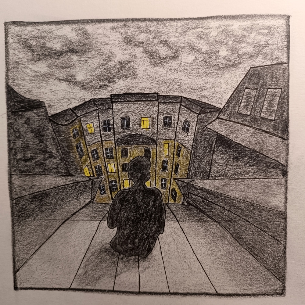 @Albert_Sottiaux J'aime beaucoup la façon dont tu as choisi de traiter ce thème. Ce toit doit sûrement abriter quelques oiseaux ou autres animaux, je les devine.