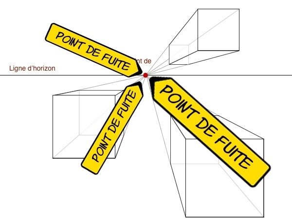 1 point de fuite, ou 2, ou 3 ou 5. C'est la justesse de cette perspective qui compte :