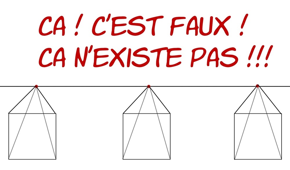 Je dis “1 seul point de fuite pour 3 maisons”. Avec des carrés bien carré.
