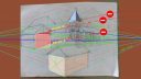 La maison du bas est correcte. Comprends-tu à quoi servent les fuyantes que tu as tracer sur la maison du bas ? A construire la maison, les fenêtres et compagnie. C'est les fuyantes qui construisent la maison. C'est pour cela que c'est absurde de les effacer au début.