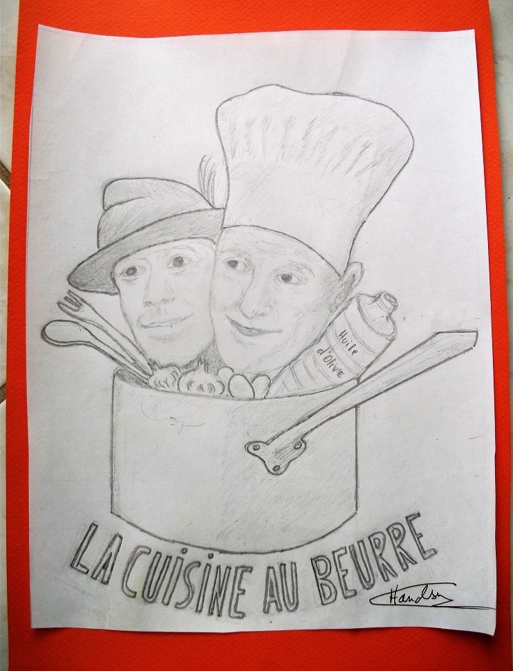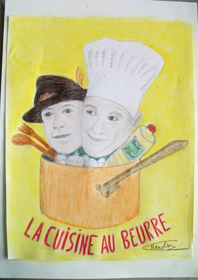 Voici mon affiche cinéma , La cuisine au beurre de Fernandel et Bourvil les 2 géants du rire .avec modification du contenu de la casserole , cherchez pas le beurre il est fondu au fond , les ingrediants sont pour le célèbre Aïoli ..