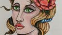 j'aimerai le faire façon tattoo traditionnel ( ou Neo-traditionnel vu le style que j ai fait ), donc mono couleur en jouant juste sur ombre et lumière mais c'est pas un truc que je maitrises donc j appréhende ….de plus , je suis limite dans dans mes choix de couleur par ma maigre collection de promakers