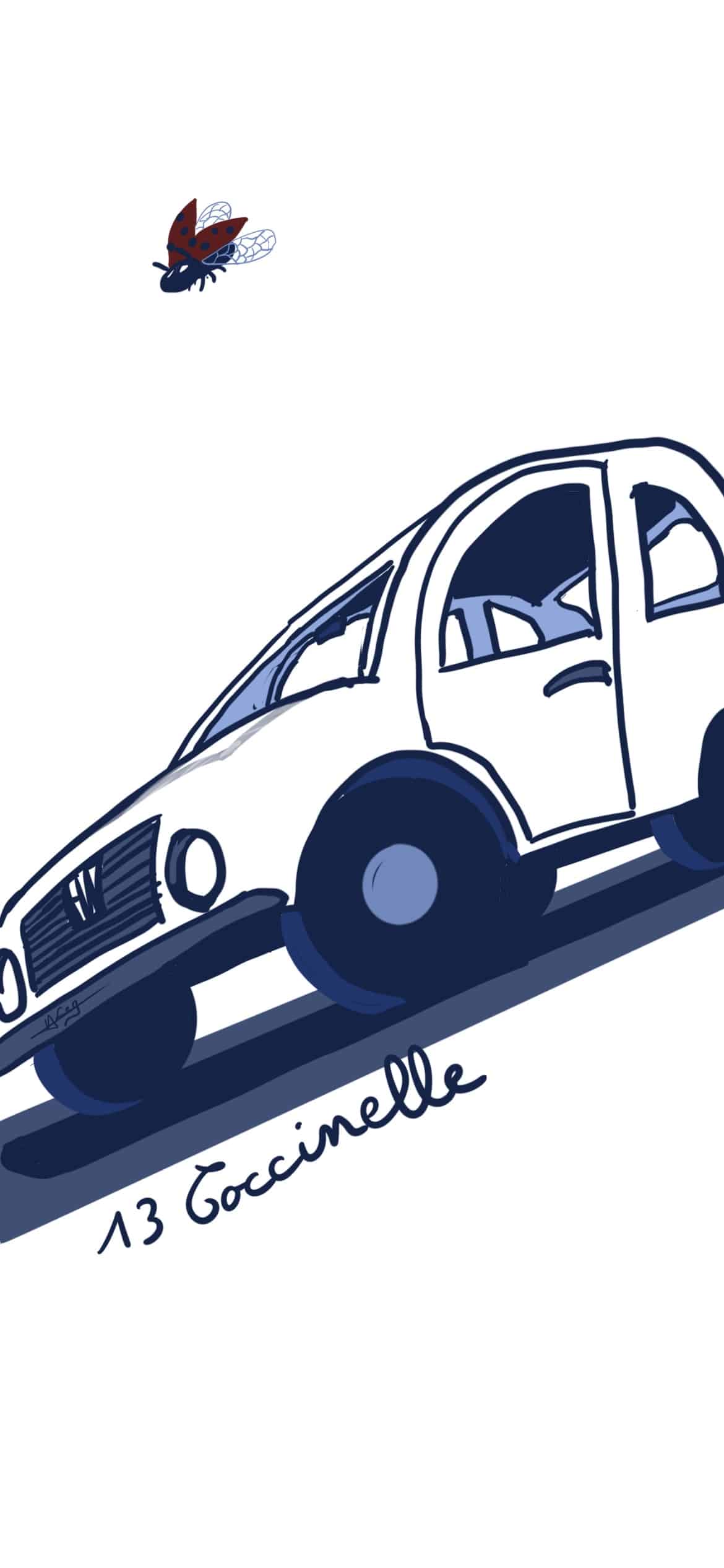 jour 13 : coccinelle (celle de ma maman était une FIAT 500 mais ici elle ressemble plus à une 2CV :/ )