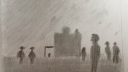 Mais bon j'ai dû refaire et pour finir, je n'ai utilisé que du HB sauf pour le ciel que je voulais “encore une fois” pfff….bien noir !