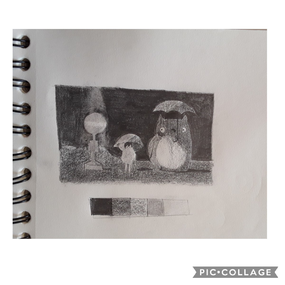 Voilà ma vignette, je pense que ça commence enfin à rentrer, j'aurais dû baisser les valeurs en haut à droite, mais comme la feuille courbait avec le graphite elle se tournait, c'est pour ça aussi que j'ai mis mon crayon pour la photo. 😄