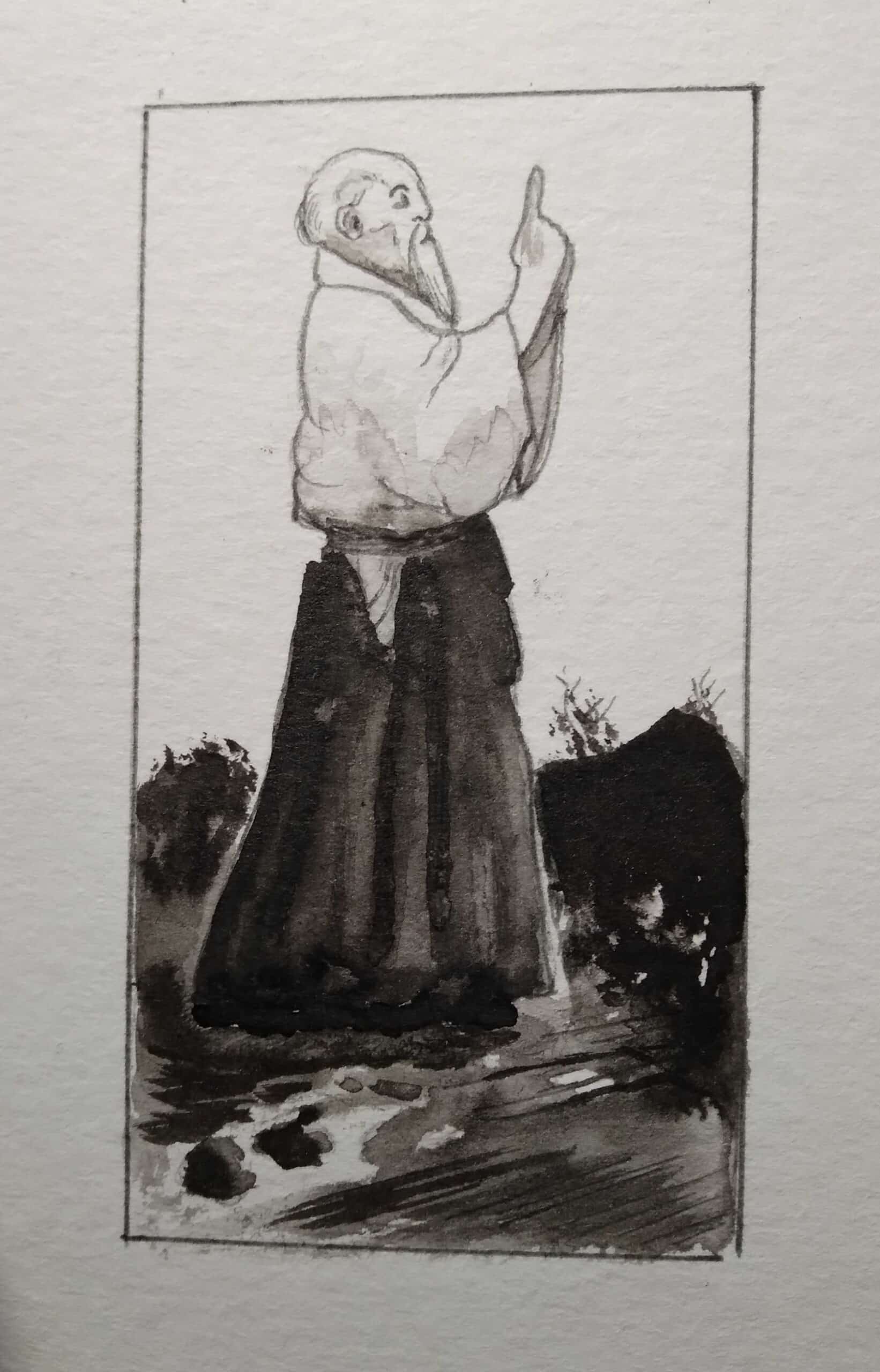 Voici le personnage debout (encre de chine), d'après une personnage de bd