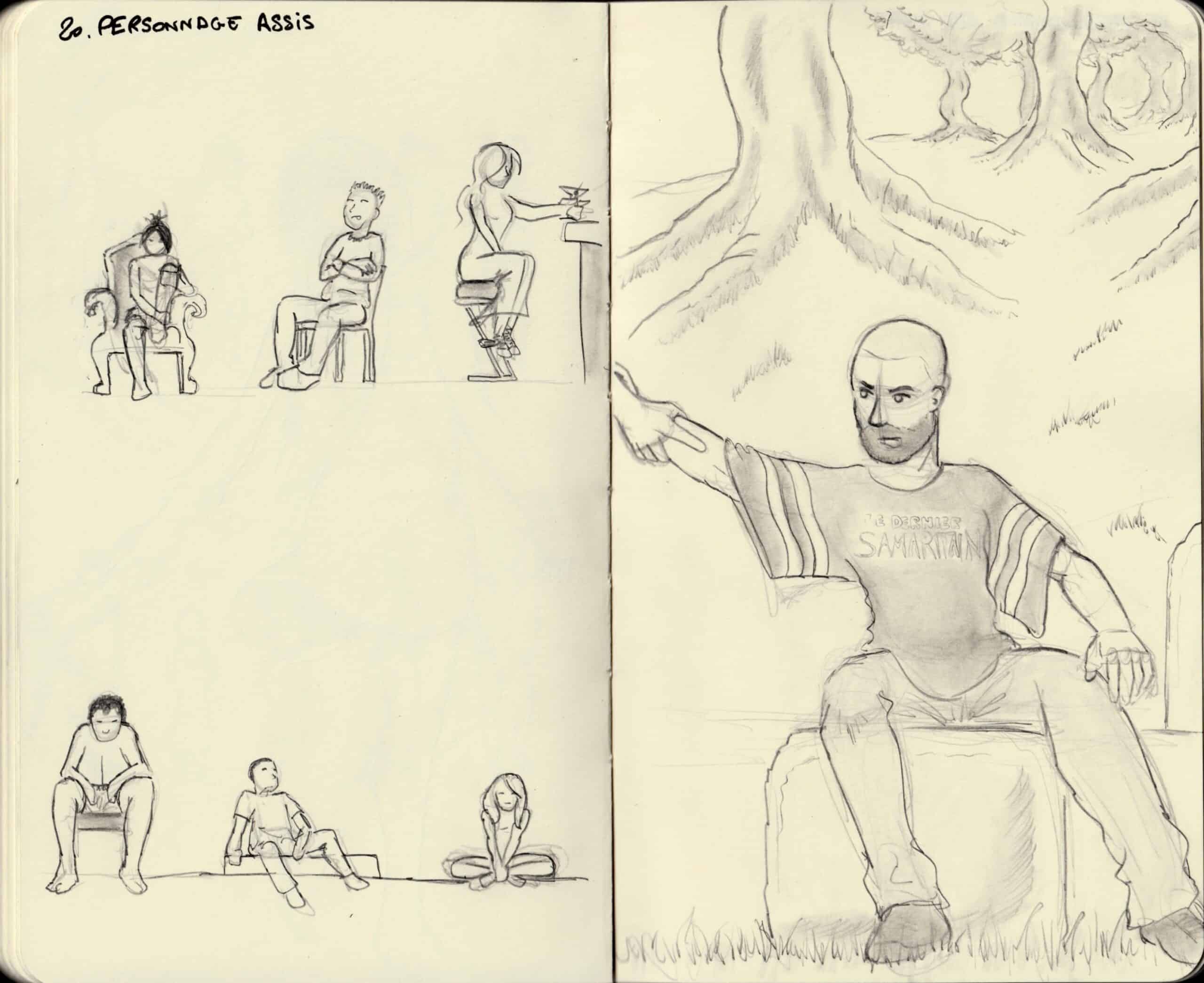 @Cyril : en effet, ce challenge me fait remplir des pages mais ce sont de petites pages (A5) donc ce n'est pas si impressionnant ^^'Voici mon personnage assis (mais on dirait qu'il va devoir se lever…)