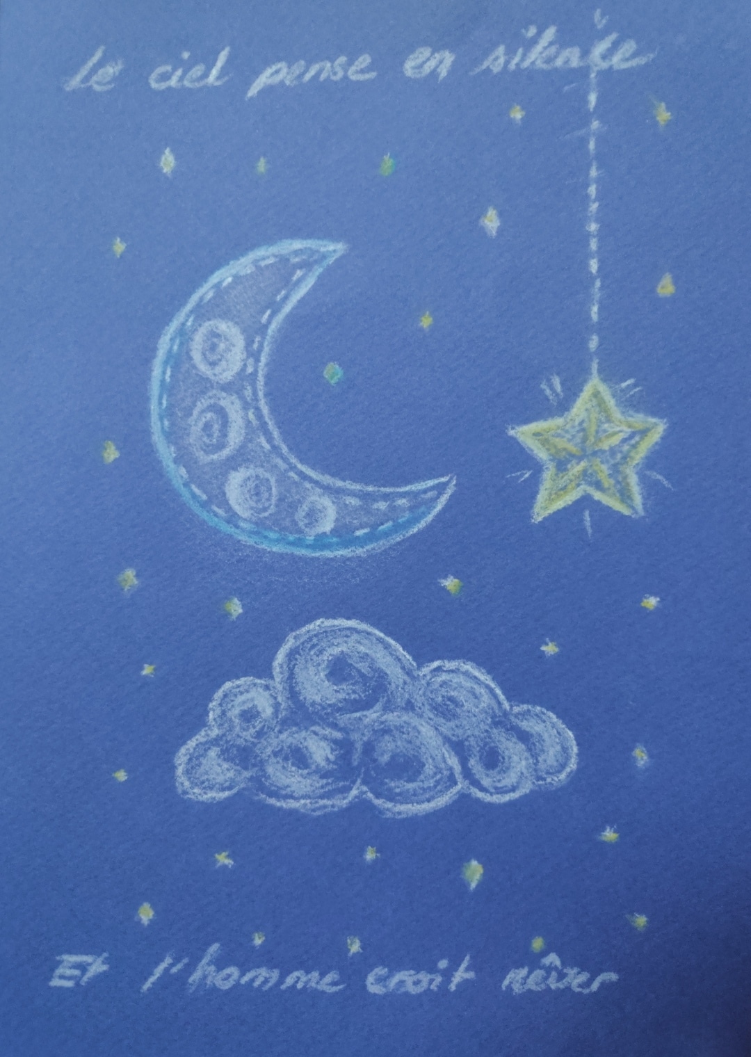 @arsenicBonsoir, pas de temps aujourd'hui mais heureuse surprise, j'ai pris un crayon blanc sur un papier noir et le nuage s'est dessiné tout seul en 2 minutes !