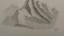 J'ai galéré parce que j'ai voulu faire une monatgne du cirque de Mafate de La Réunion d'après une photo. Je l'ai fait d'abord au graphite puis je n'ai pas pu m'empêcher de mettre de la couleur (crayon aquarellable) par dessus ! Voilà ce que ça donne….