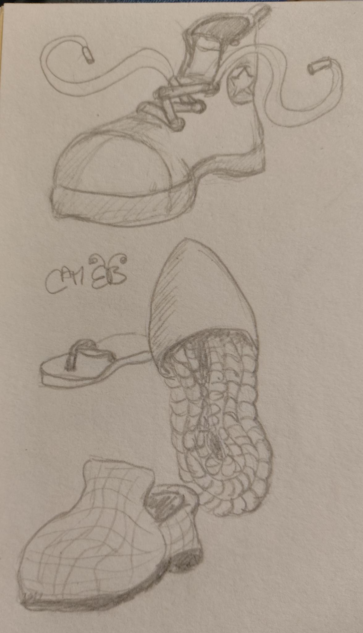 La chaussure pour moi pas facile, j’ai essayé de simplifier mais je ne suis pas sur que soit la bonne solution avec des cercle je n’y suis pas arrivé