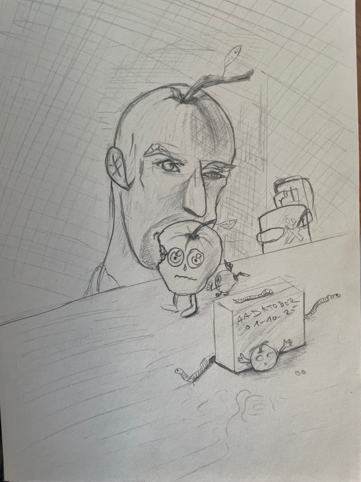1 octobre 2025 à 14:51 #325616Bonjour à tous et bravo pour toutes ces pommes. Bon je me lance dans l’aventure… je ne sais pas jusqu’à quand?? Mes photos changent beaucoup les couleurs c’est un peu frustrant mais je n’ai pas d’autres moyens. Voilà ma pomme avec son petit asticot, à l’aquarelle.