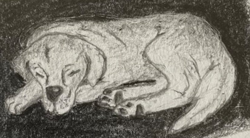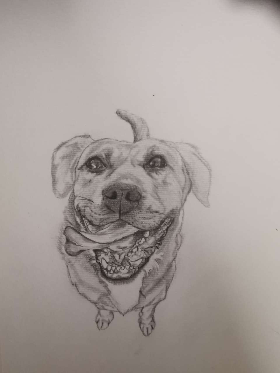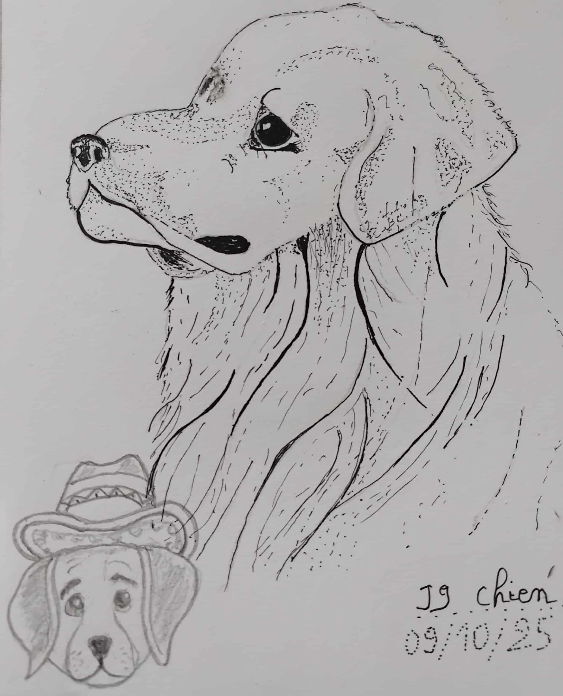 voici mon chien : premier essai au stylo et pointillisme, son oeil droit est un peu bizarre .l'erreur ne pardonne pas avec cet outil, mais tant pis .