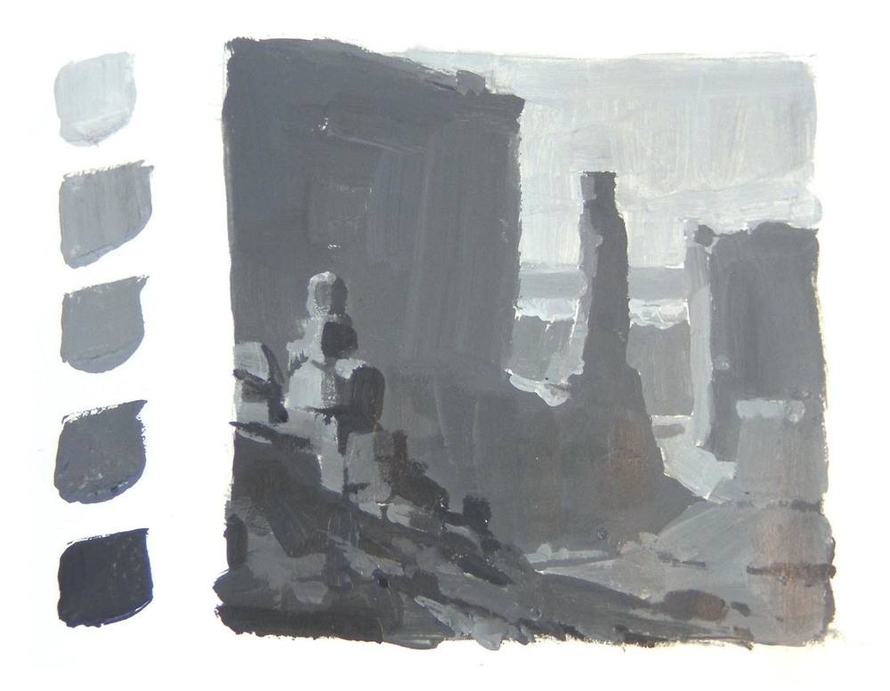 Ensuite, faire un fond plus clair est possible, la perspective atmosphérique tend à éclaircir les valeurs. L'unification n'est pas un problème est si le fond n'est pas ton point focal.