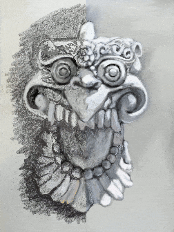 Il est possible que tes traits de contours soient trop marqués. Je ne saurais pas trop comment te l'expliquer mais dans ce que j'ai compris dans la formation croquis c'est que les contours ne doivent pas être trop visibles. Par exemple par rapport au fond noir sur la gauche, de mémoire, il faudrait que le trait de contour se confonde avec le fond. Ça devrait plutôt être une sorte de dégradé. Je ne suis pas aussi pointue que d'autres dans ce type de technique. Je sais que j'ai encore parfois tendance à laisser apparaitre certains contours également.