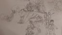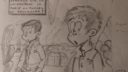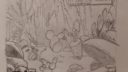 @brunokoMerci @Lours blanc (L'ours blanc)@Paulette (Paulette) et @isadoralys (isadoralys), c'est vrai que la BD j'adore ça, mais il faut être lucide, c'est fastidieux et il y a tant de progrès encore à faire et beaucoup à apprendre, j'aime y mettre du détail (pas toujours des plus heureux) tout en gardant ce côté ludique du dessin. J'aurais fait un (très) mauvais De Vinci, mais peut être un Léonard acceptable ou au moins son disciple :D. L'avantage, c'est que c'est plus un loisir qu'un métier, donc sans contrainte, je vais au rythme où je vais, en progressant aussi à mon rythme. En général je commence vers 20h pour m'arrêter vers minuit en semaine, et vers 2H ou 3H du matin les WE. En semaine j'emmène toujours mon carton à dessin, et Je profite de ma pause le midi pour sortir mes crayons. J'avais acheté une formation de Pit l'an dernier, et ça m'avait bien permis de redémarrer vers ce style, et surtout redonné l'envie de dessiner maintenant que j'ai un peu plus de temps. Le reste, ça vient en observant de vieilles BD et en essayant de comprendre leur construction graphique. Cerise sur le gâteau, une petite semaine de congé devant moi à la maison, et que ça à faire pratiquement. Ce que je voudrais maintenant c'est bien stabiliser mes personnages d'un dessin à l'autre.