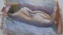 @Deuxbe (Deuxbé) oui merci, c'est un média qui demande du temps pour obtenir un bon résultat je pense…Je n'aime pas les valeurs dans le dos qui dessinent une vilaine balafre vue de loin. C'est le genre de truc que tu oublies facilement et que tu remarque seulement après.Voici un autre tableau fait avec la même approche, utilisant le même medium: (et bien mieux réussi – le nu, c'est quand-même le summum en peinture).