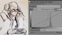 Pour les valeurs, je te postes un truc qui j’espère va pouvoir te servir. Regarde, j’ai copié ton dessin et ajusté la courbe de valeur dans Gimp, tu vois l’histogramme de base cela forme une courbe concentréé en un seul pic étroit. Une image équilibrée, sauf effets spéciaux voulus, va présenter une courbe beaucoup plus étalée, comme dans le deuxième histogramme que je poste, et qui est tout simplement celui de l’image une fois corrigée, elle a perdu en informations à cause de la correction que lui ai fait subir, mais le spectre a été étalé artificiellement. Essaie d’étaler ton spectre sur la plus grand plage de valeurs possibles.