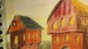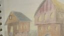 @Rhum1Etudes avec deux médiums différents (pierre noire + aquarelle d'un côté et polychromos de l'autre) de maisons pittoresques avec colombages pour une “commande”.