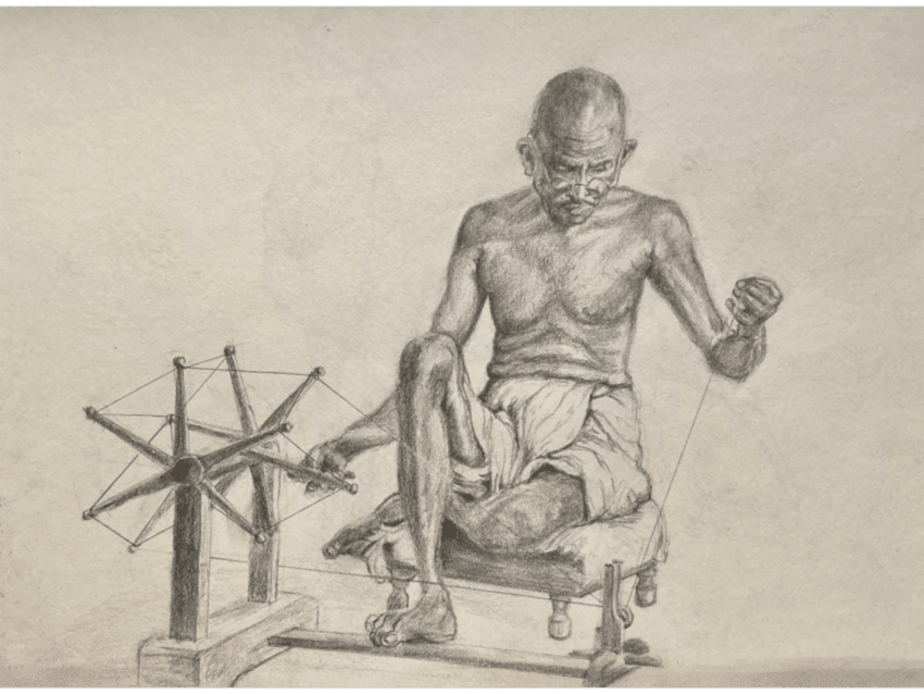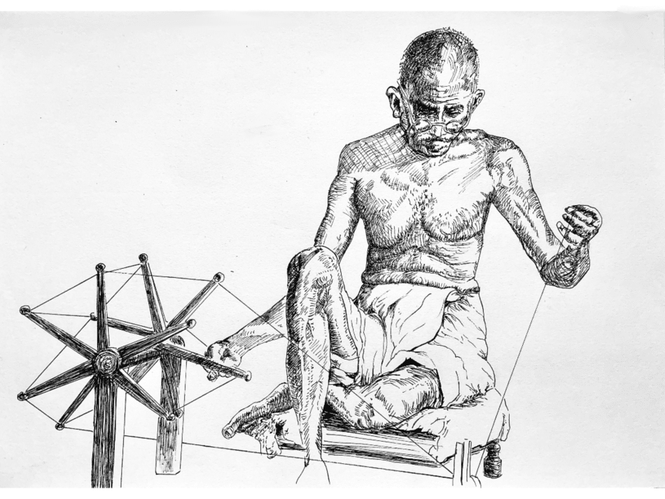 @Rhum1Slt, tjrs en recherche d'un encrage potable… gandhi d'après photo, au crayon puis encré au liner et feutre fin miniature plomb d'un grenadier 1810 au liner direct sans construction, sans crayonné préalable…