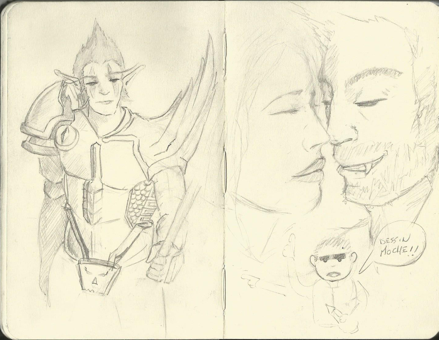 @Vivien3Yo tout le monde, bon j'ai décidé de montrer les nouveaux dessins fait au taf pendant mes pauses sur mon molleskine et aussi une légère avancé sur un dessin couleur que j'ai commencé y'a 1 mois (très légère même pour certain qui sont sur la communauté google + ^^' )