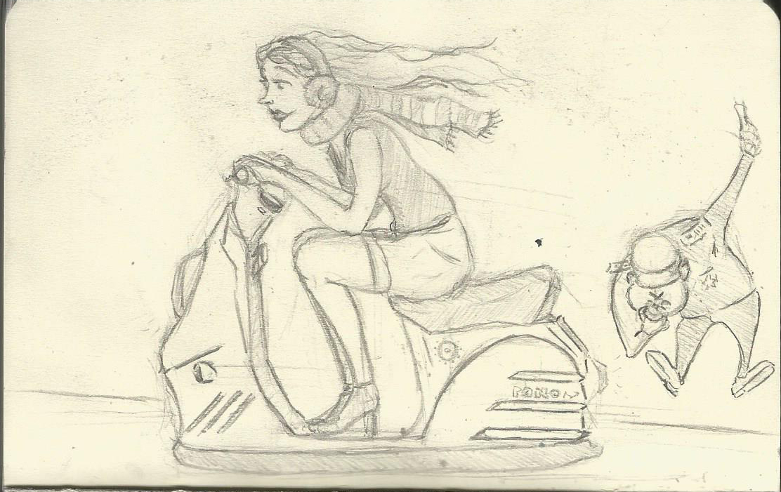 j'aime beaucoup la jeune fille sur le scoot et le le premier dessin, j'aurais bien voulu les voir plus aboutis