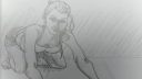 En ce moment, je dévore Force, de Michael Mattesi. J'essaye d'appliquer ces concepts à mes dessins, moins de traits, plus de fluidité. C'est pas gagné, mais au moins, je pratique avec un objectif précis. Je suis aussi sur la perspective, en m'entrainant avec des poses plus compliquées pour bien décomposer le corps en bloc, tester leur agencement, etc. Voici un exemple, pas plus tard qu'aujourd'hui, avec plusieurs croquis de test, dans d'autres positions pour voir si je comprends bien l'anatomie, puis un dessin un poil plus élaboré. Excusez la qualité pas terrible, c'est tiré d'un petit carnet de croquis et avec un téléphone.