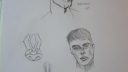 @Tétévoilà mon travail d'hier. J'ai enfin pu travailler un peu plus la segmentation sans valeur, mais simplement le trait et ce qui va avec. Puis une petite étude du nez et deux petits portraits dont l'un a été construit avec un soin particulier sur le nez étudié auparavant (difficile puisque très petit). L'autre avec la sphère d'abord, puis le squelette de la mâchoire, du nez et des orbites auxquels j'ai ajouté quelques valeurs.