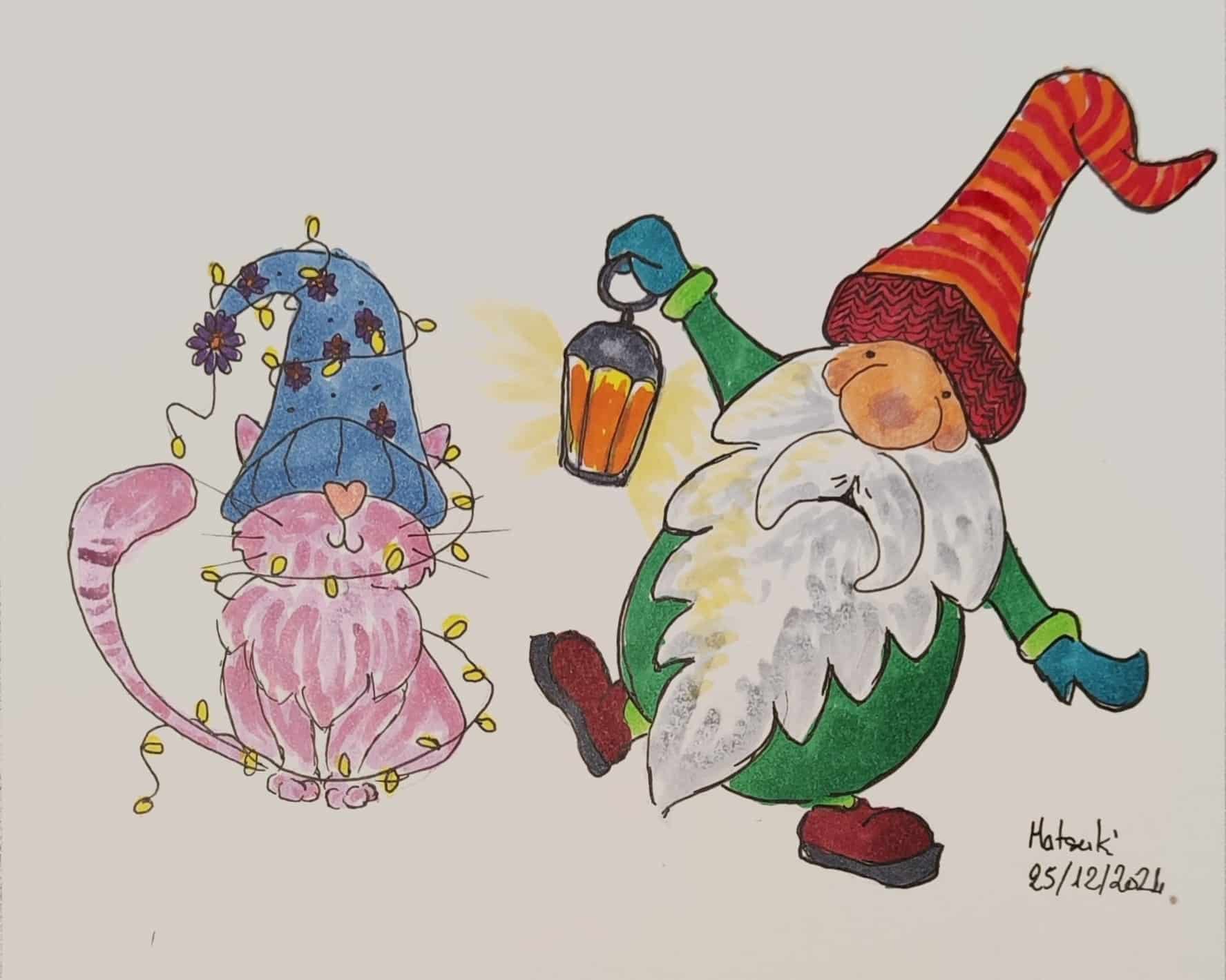 @MatsukiJe m'essaye à la couleur, tests de mes copics du Papa Noël. Dessin au Liner et mise en couleurs.