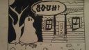 Je me suis rattrapée avec mon petit personnage qui apparaît de temps en temps dans ce défi avec une maison hantée