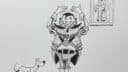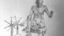 En retard d'un jour alors je poste  sans encrage. Il faut reconnaître que je me suis consacré plus au personnage qu’au métier à tisser et même si j’ai un peu cherché sur le net je ne pige pas comment fonctionne cet outil. Et dessiner quelque chose qu’on ne comprend pas c’est un peu stupide…