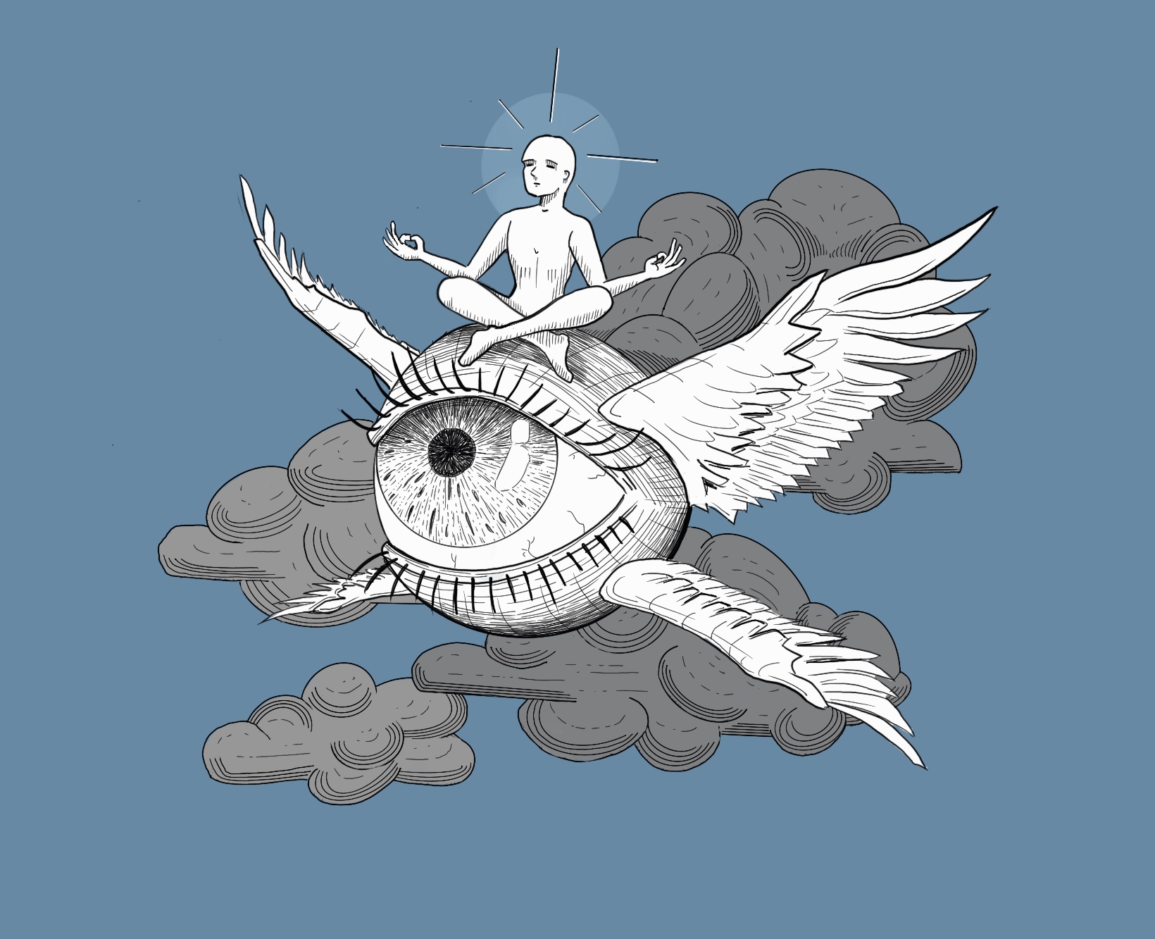 Pour Aware, le thème m’a paru compliqué au premier abord, puis l’idée d’une personne méditant avec une clairvoyance m’est apparue! N’ayant pas meilleure idée, je suis parti sur un dessin métaphorique.