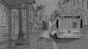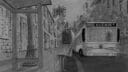 Voici mon dessin pour la tombe (point de vue d'un vautour qui trouve que c'est un vrai gâchis d'enterrer nos morts) et aussi celui pour l'abri bus que j'avais oublié de poster. J'avais oublié pour ma première version de prendre en compte l'ombre des bâtiments situés à droite de l'image, j'ai donc rectifié vite fait à l'ordi (seconde version) . Si j'avais fait des vignettes avant, j'aurais sûrement évité cette grossière erreur ou j'aurais opté pour un autre positionnement de la lumière. Bah, tant pis, n'apprend-t'on à partir de ses erreurs…