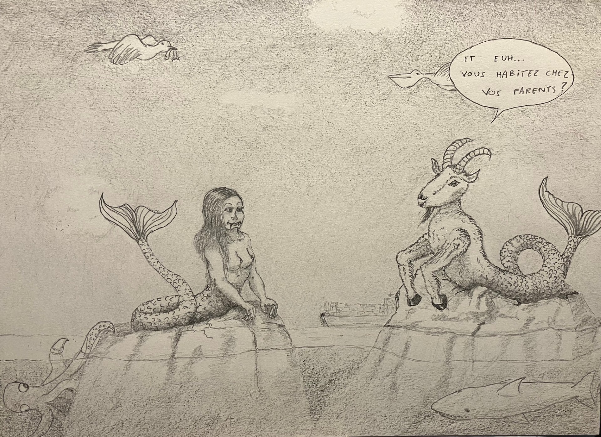 @Chaise_de_jardin, là encore idée bien trouvé…ta sirène a l’air menaçante avec ses crocsPour Capricorne, animal fantastique (surtout quand il est du 2ème décan