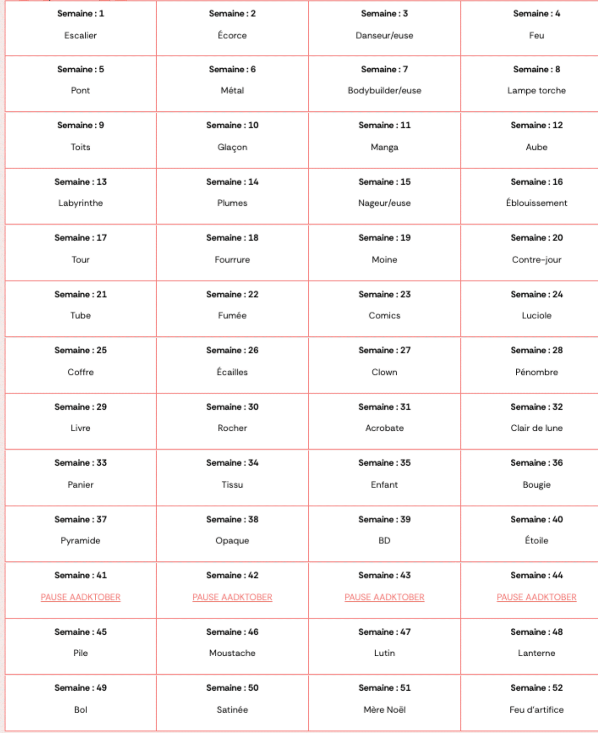 Merci à tous les deux pour vos réponses – j'ai une devinette : quelle est la différence entre AADktober 52 2026 et Inktober 52 2026 créé par @Igricheff ?