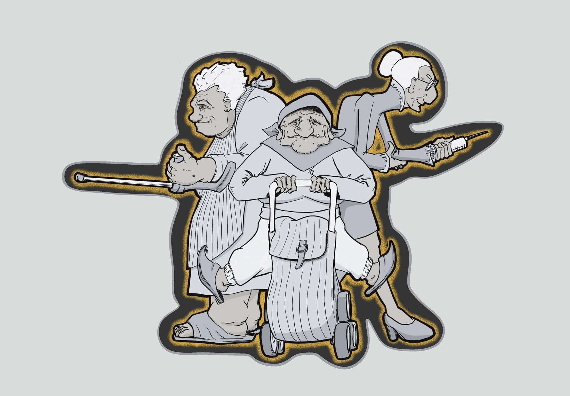 @CedraakVoici mon dessin pour les thèmes passés CRUNCH et GRANNY (version drôles de Mamies)