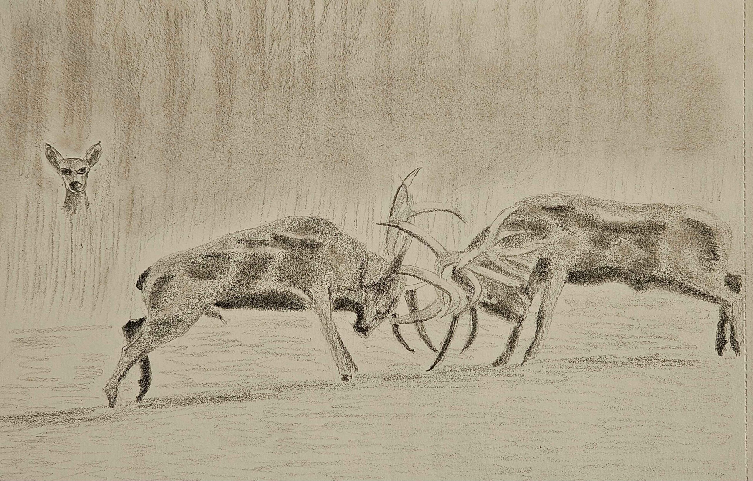@Jocelyne31 très beau dessin. On ressent le choc des bois. Et la biche qui ne semble pas attendrie mais plutôt calculatrice … j’aime
