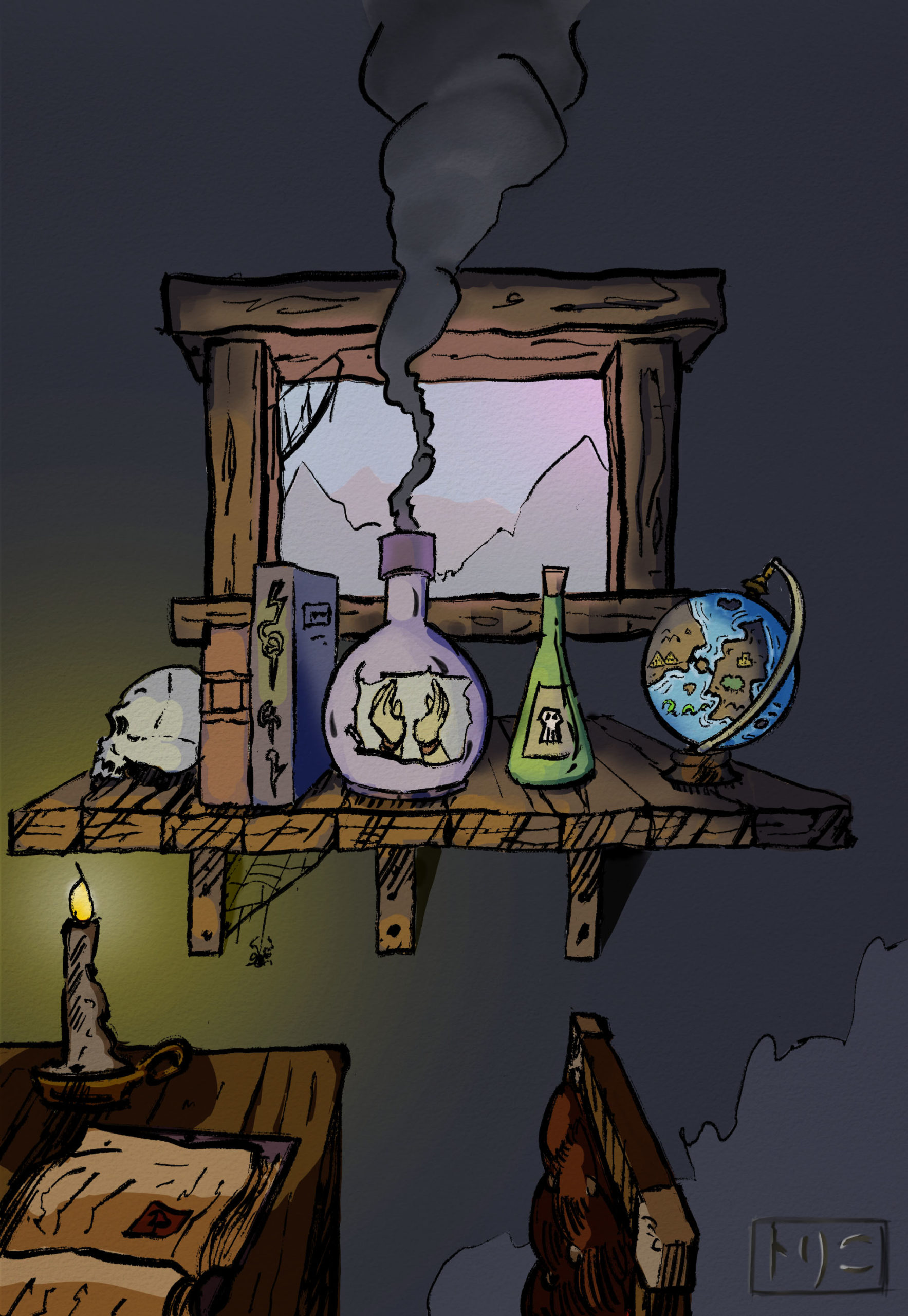 La tour lisse comme du verre ne comportant aucune entrée, aucun aventurier ne s'y était encore introduit pour vérifier la rumeur la plus morbide qui entourait la tour maudite : le sorcier, dit-on, aurait réussi à capturer l'essence d'un être vivant, son âme, dans une bouteille. ”