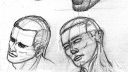 @Gom@Deuxbe (Deuxbé) la structure flotte encore un peu. Essaie d'être plus synthétique et de bien marquer tes repères. Au besoin (et je sais que t'aimes pas) simplifie les têtes en parallélépipèdes dans l'espace (en gros un cube un peu allongé, sous l'angle que tu souhaites). De là, trace les repères nécessaires (les lignes parcourant le milieu de la forme, verticalement horizontalement et dans la profondeur).