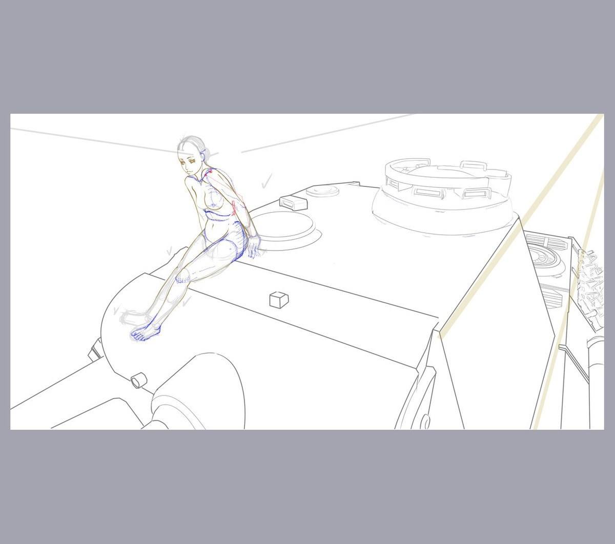 @Steeve_G_Antony_MEDASBien la fille sur le panzer. Tu peux aussi regarder des images du manga “Girls und panzer”. Il y aura peut-être un peu plus d’images de références avec des filles sur des tanks. ^^