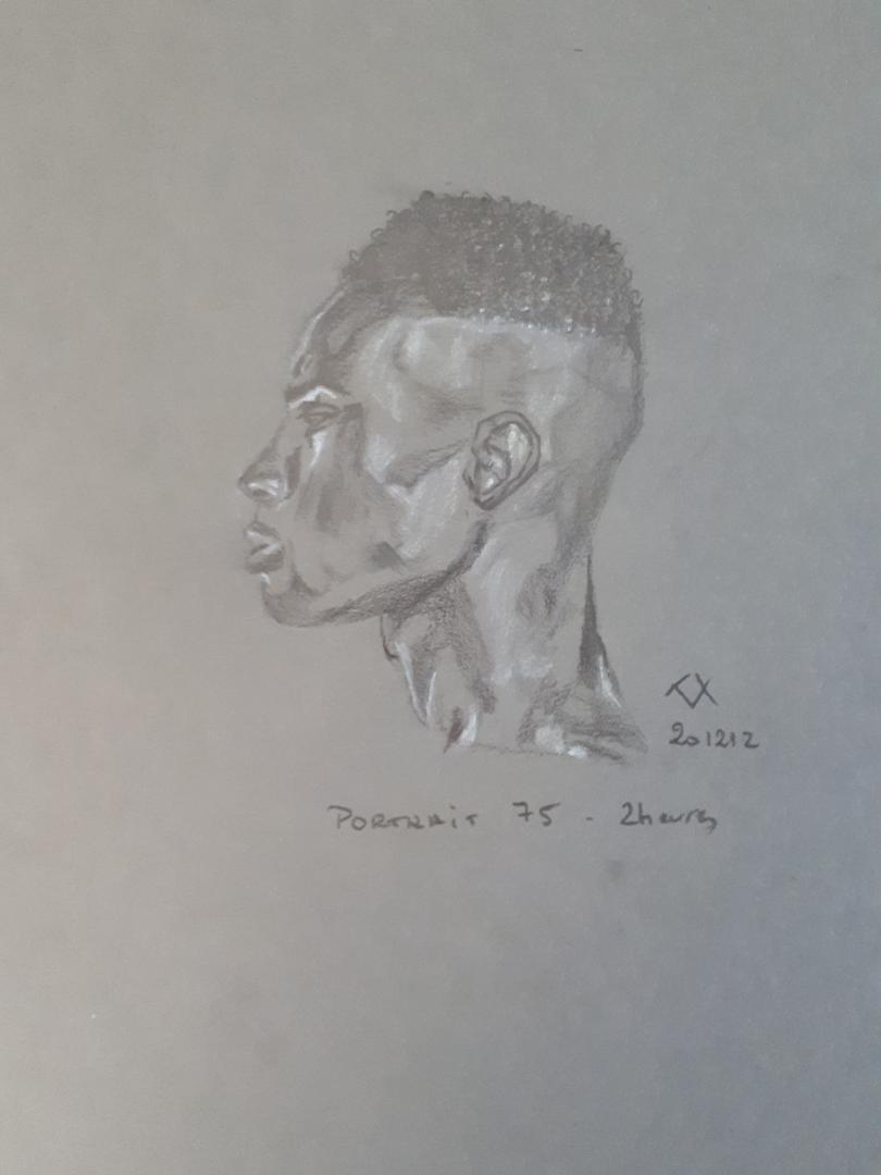 Ce portrait est très simple pour toi, mais pour moi il est difficile, je suis encore en apprentissage…et je dessine un peu plus vite (même si 2h pour toi c'est beaucoup), ça m'ajoute de la difficulté, c'est pour ça qu'à mon niveau, bien sûr, je suis très content de ce portrait !