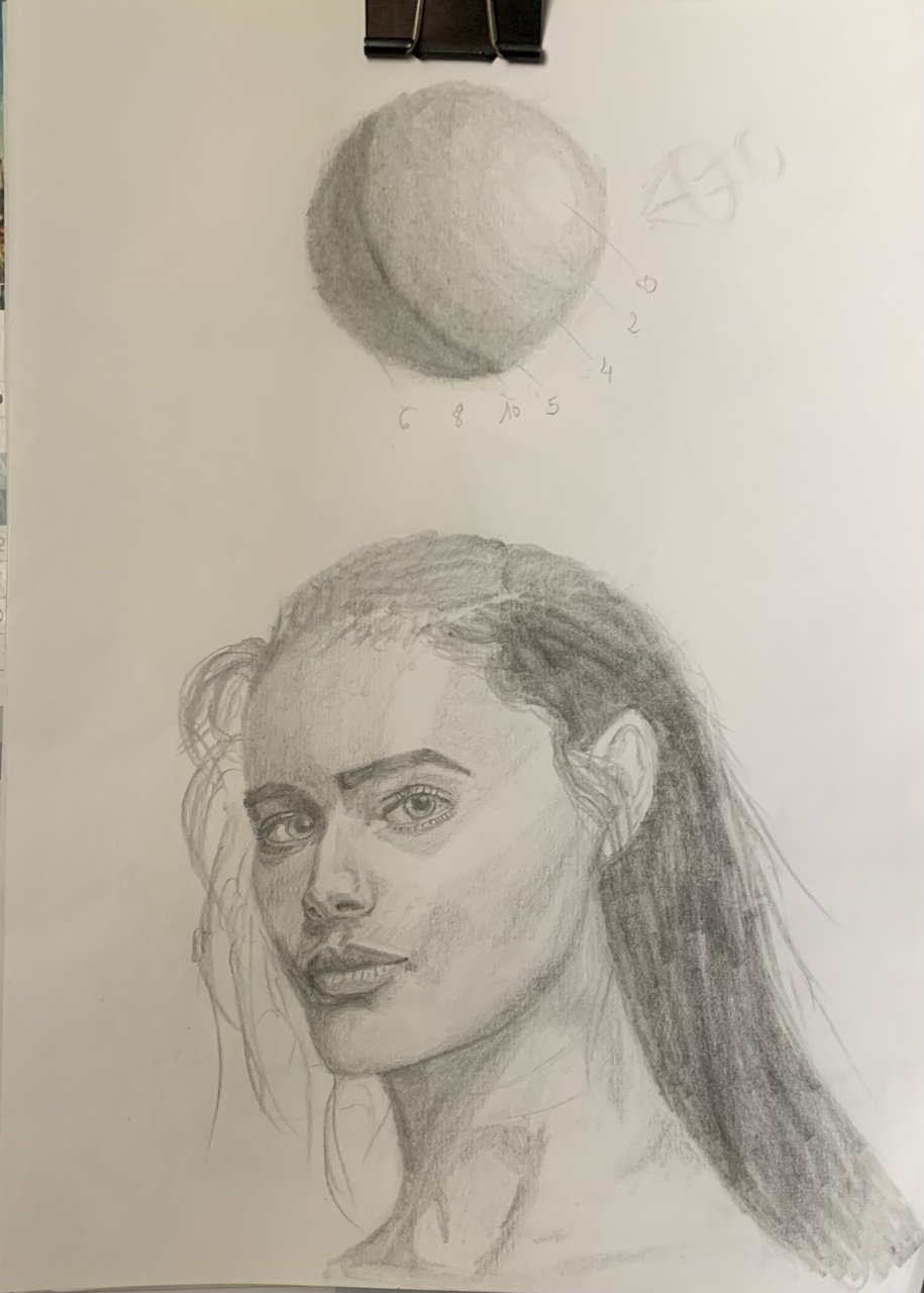 Je me permets de donner mon ressenti au sujet de ce portrait. Je ne prétends pas que mon avis sera forcément pertinent étant donné que moi-même ne suis pas encore capable de faire ça et que les jeux de lumière et volume ne sont pas ma tasse de thé… donc à prendre ou à laisser